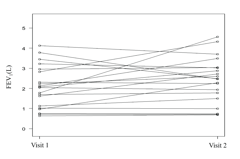 The mean FEV1 difference between the day of ICS initiation and after 28 days of ICS treatment was 340 mL (95% confidence interval [CI]: −100 to 770 mL; p = 0.122; Figure 1).
